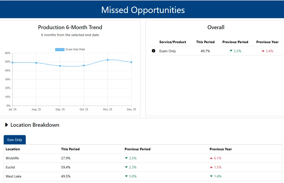 EHR reports list numbers, but Project UP connects those numbers to behavior, compares them against real optometric peers, and highlights where operational changes will actually move revenue.
