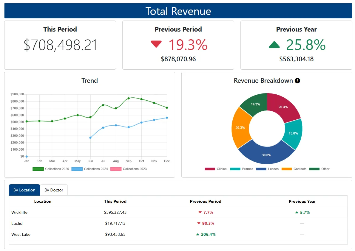 Understand how your practice stacks up — not against generic healthcare data, but real optometric benchmarks.